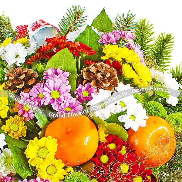 Любимый праздник - букет из хризантем и новогоднего декора