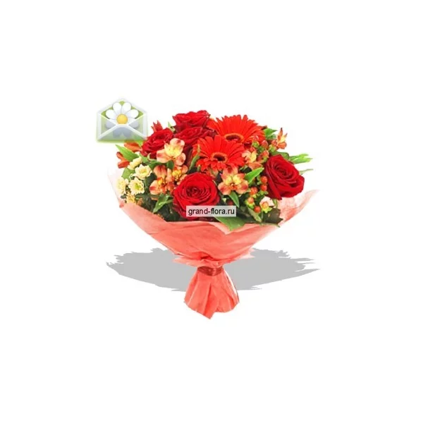 Не можете справиться со своими эмоциями? Чувства переполняют? Тогда букет «Утопая в страсти» - то, что Вам нужно, чтобы выразить с помощью ярко-красных роз, гербер, альстромерии и других не менее эмоциональных участников композиции все то, что Вы чувствуете к повелительнице своего сердца. Пусть букет скажет все за Вас!
